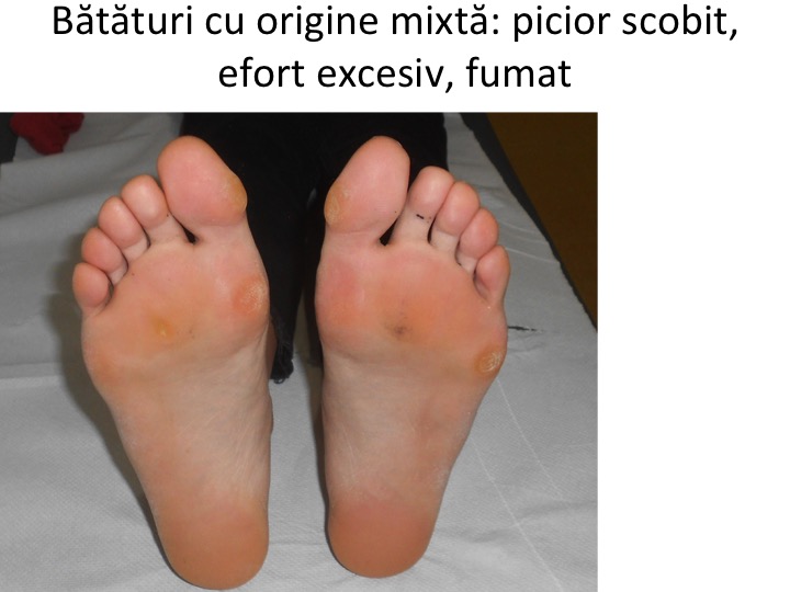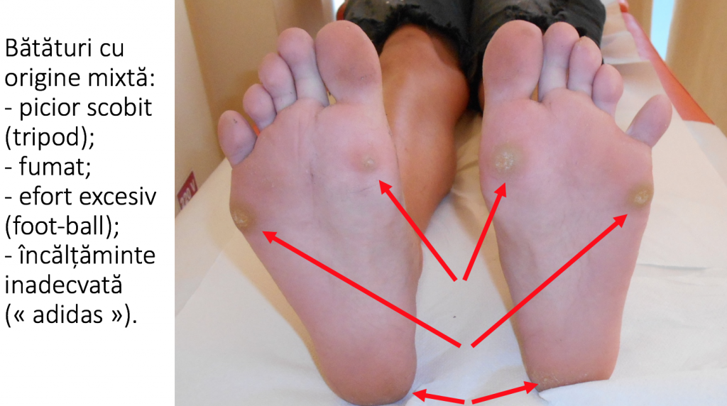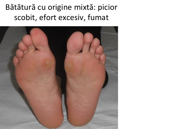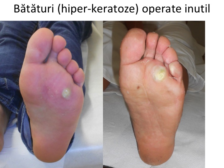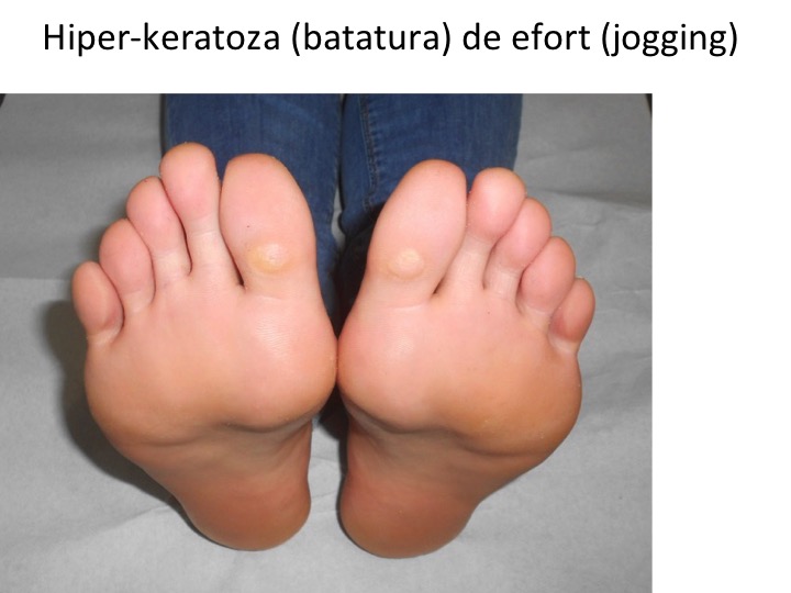 - batatura (hiper-keratoza) este o problema strict mecanica, legata de conflictul piciorului cu mediul exterior (incaltaminte, sol) sau de efortul excesiv;