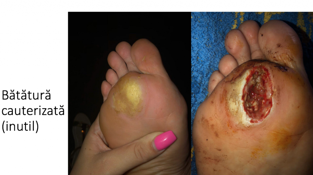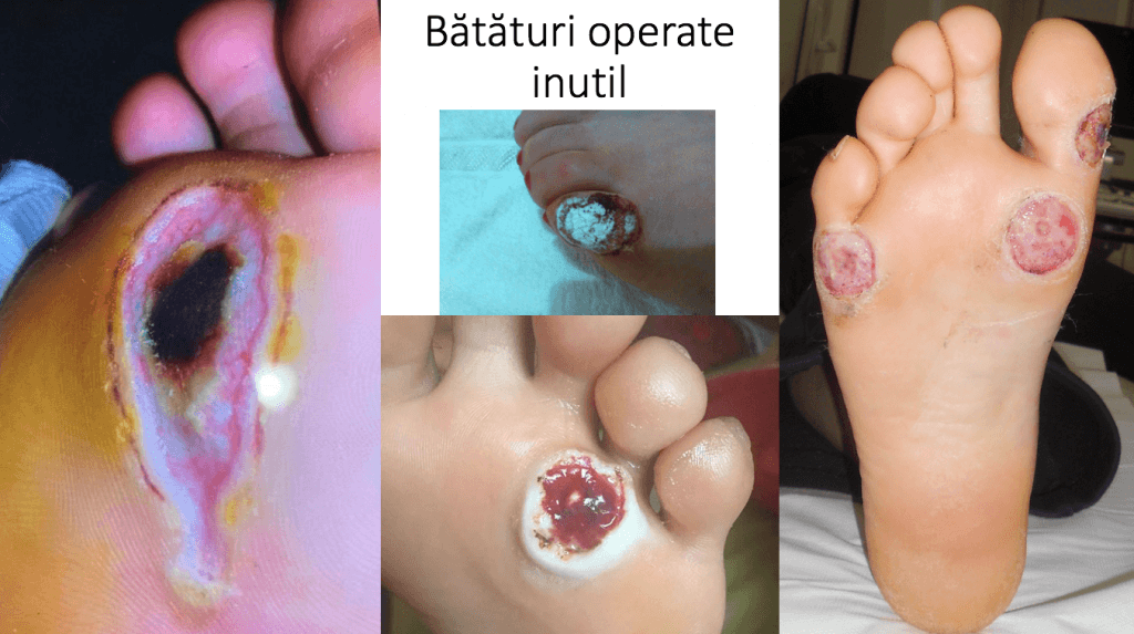 - in cazul piciorului diabetic (malperforant plantar), indepartarea bataturii poate conduce rapid la amputatia membrului (gangrena).